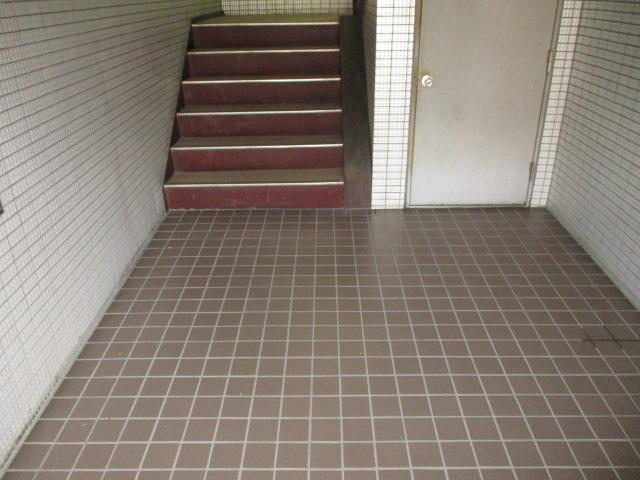 エントランス・アプローチ部分もポリッシャー洗浄・ガラス清掃。