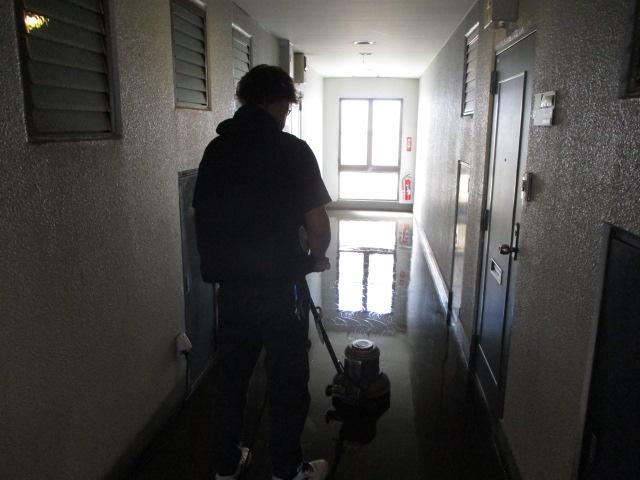 3F4Fが住居スペースとなっていて、月1回の日常清掃兼機械洗浄を実施してまいりました。内廊下になりますのでポリッシャー・バキューム・モップ拭き・WAX塗布の工程。階段はパッド手擦り・バキューム・モップ拭き。